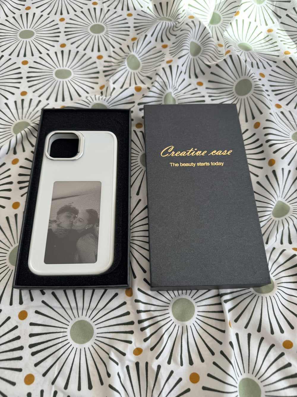 Marie F. Décembre 2025Acheteur vérifiéGénial !Cette coque est une idée géniale. J’ai mis une photo de nous deux et le rendu est magnifique. Aucun souci technique, ça marche à chaque fois. Cadeau parfait pour marquer le coup à la Saint-Valentin.