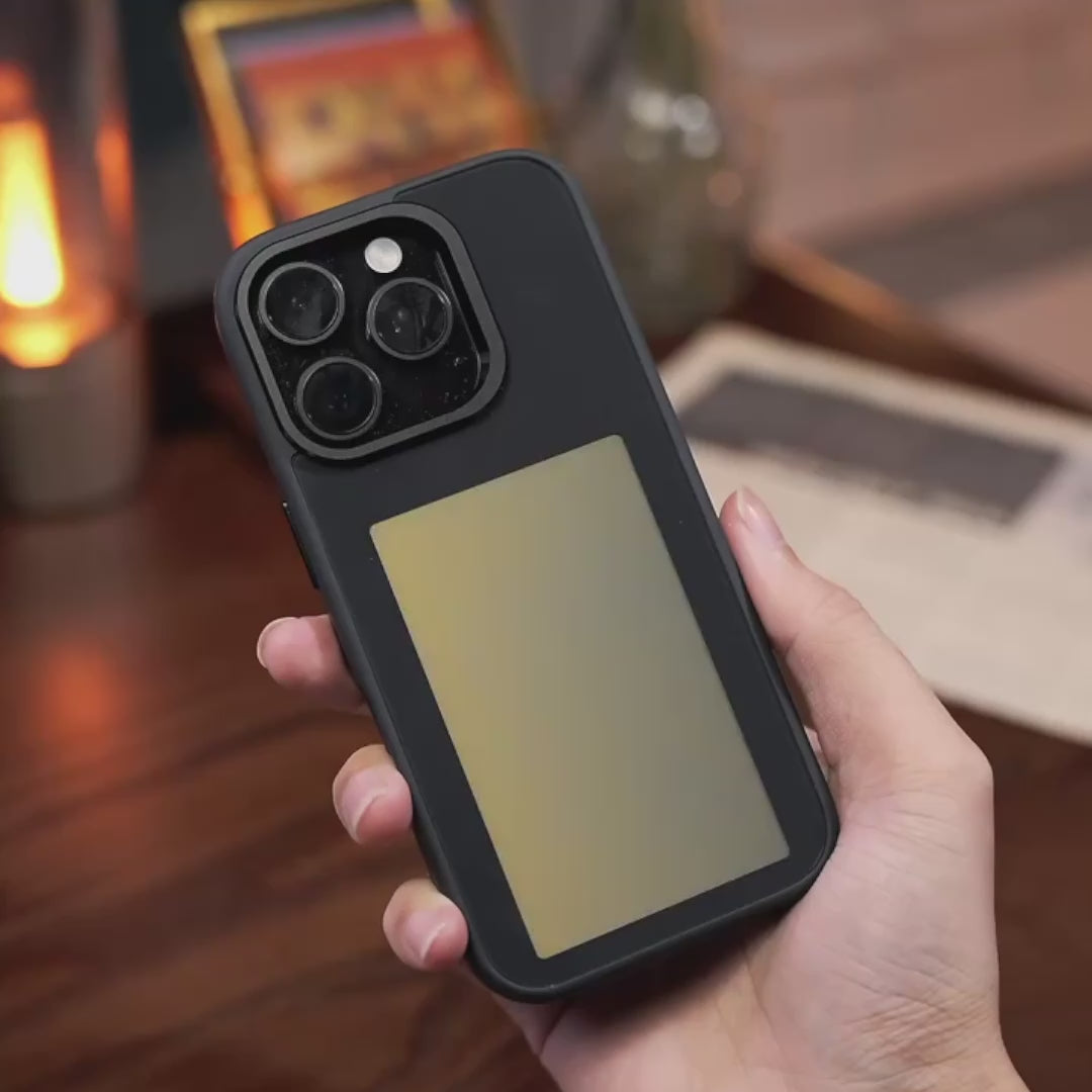 La coque fonctionne grâce à la technologie NFC et à l’encre électronique, sans batterie.